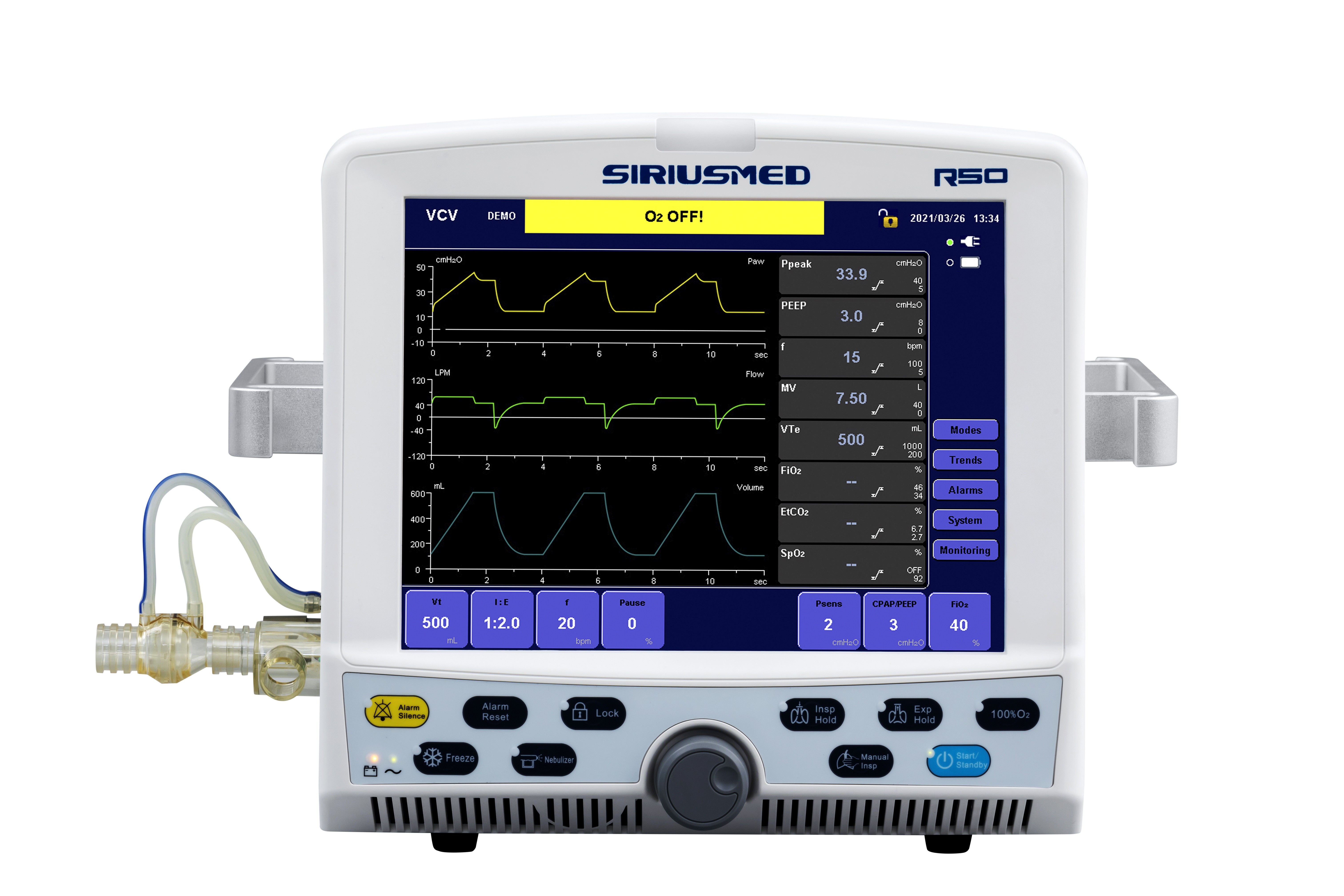 เครื่องช่วยหายใจ R50 -3 รูปคลื่นและ 2 ลูปในอินเทอร์เฟซเดียว สามารถเปลี่ยนได้รวดเร็ว